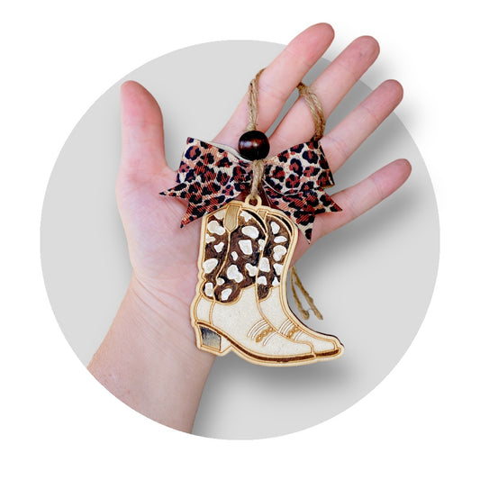 Glittery Cheetah Cowgirl Boot Wood Car Charm