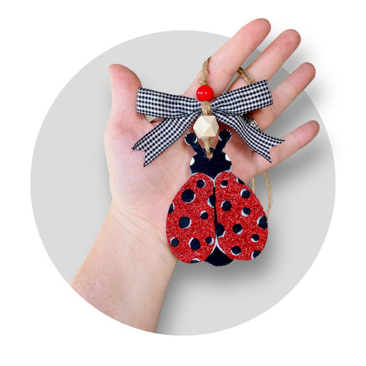 White and Brown Glittery Ice Cream Cone Wood Car Charm