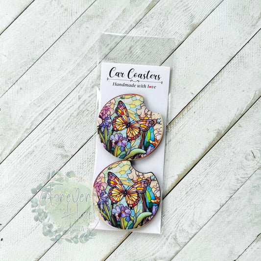 Green Coffee, Ghosts & Croissants Car Coaster Set