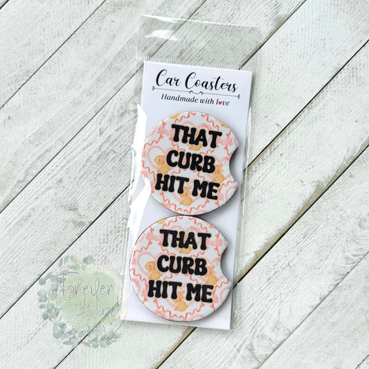 That Curb Hit Me Car Coaster Set