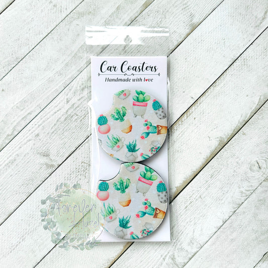Potted Succulents Car Coaster Set