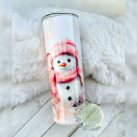 Pink Christmas Snowman Tumbler