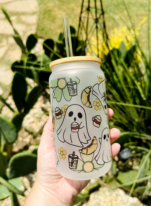 Coffee Ghosts and Croissants 16oz Frosted Glass Can