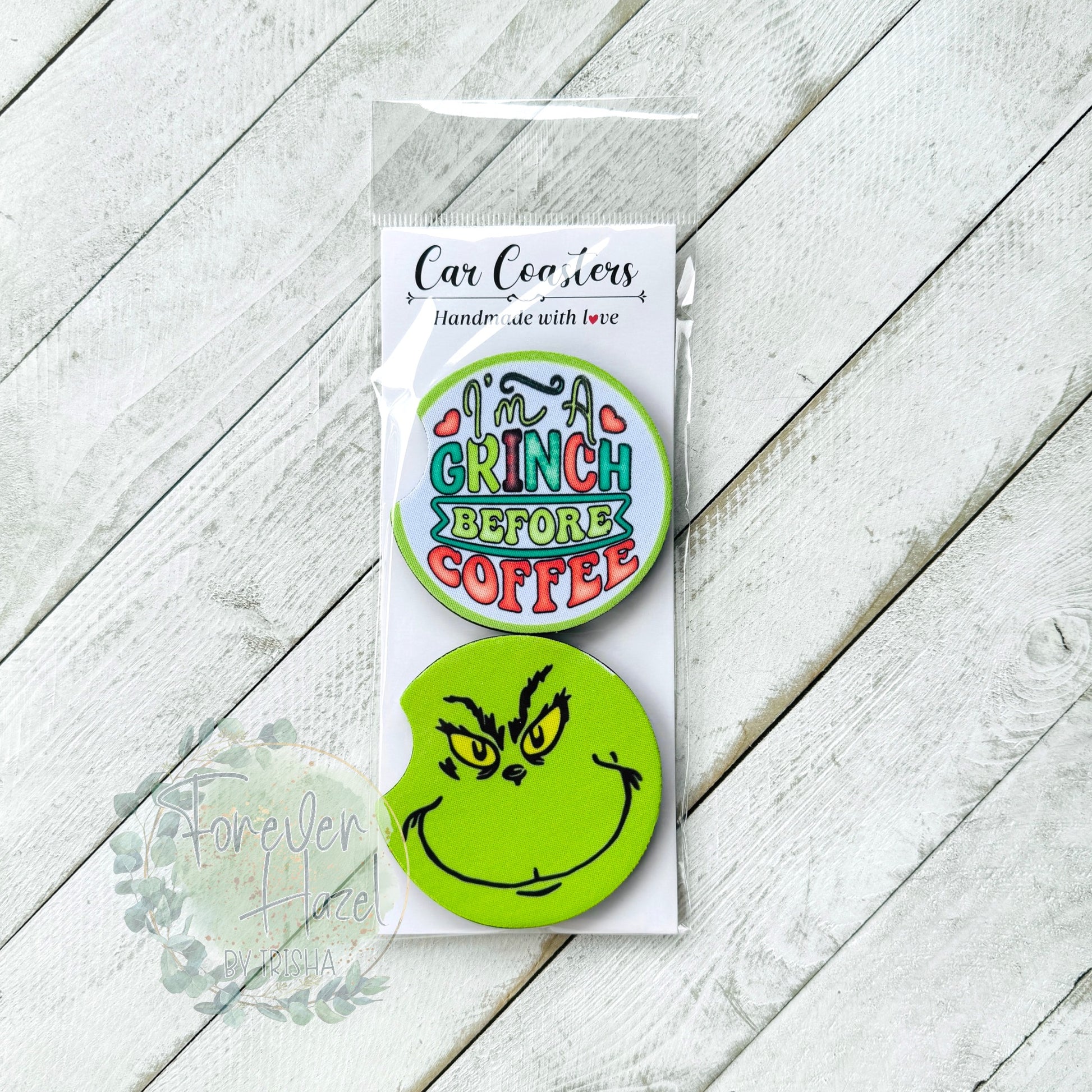 Tired of having the condensation that has pooled at the bottom of your car's cup holder drip on you? If so, you need some car coasters! These fun car accessories will keep your cup holder dry and are sure to get PLENTY of compliments! They are 2.75" neoprene rounds with a notch to make removal easy.