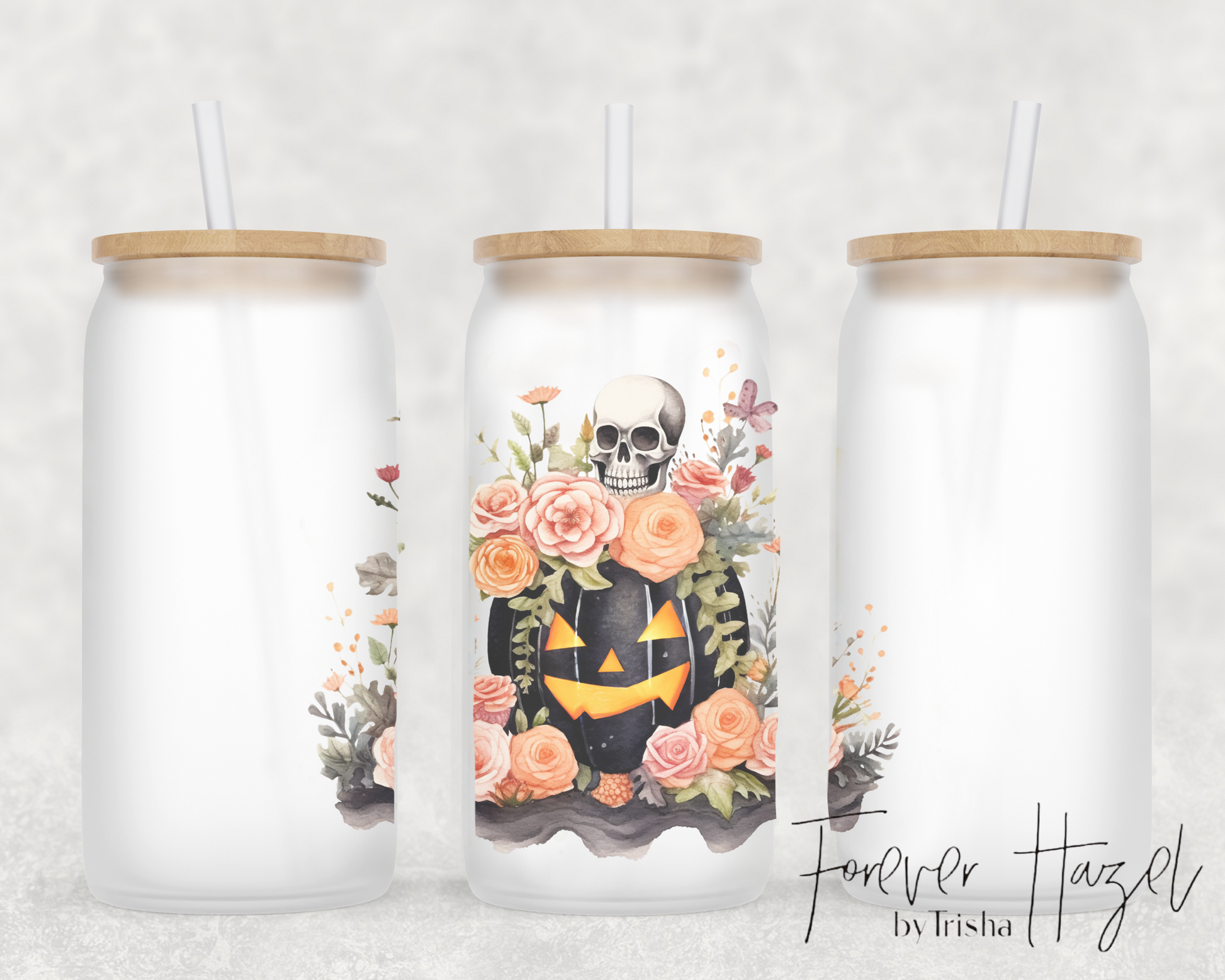 Black Jack-O-Lantern 16oz Frosted Glass Can