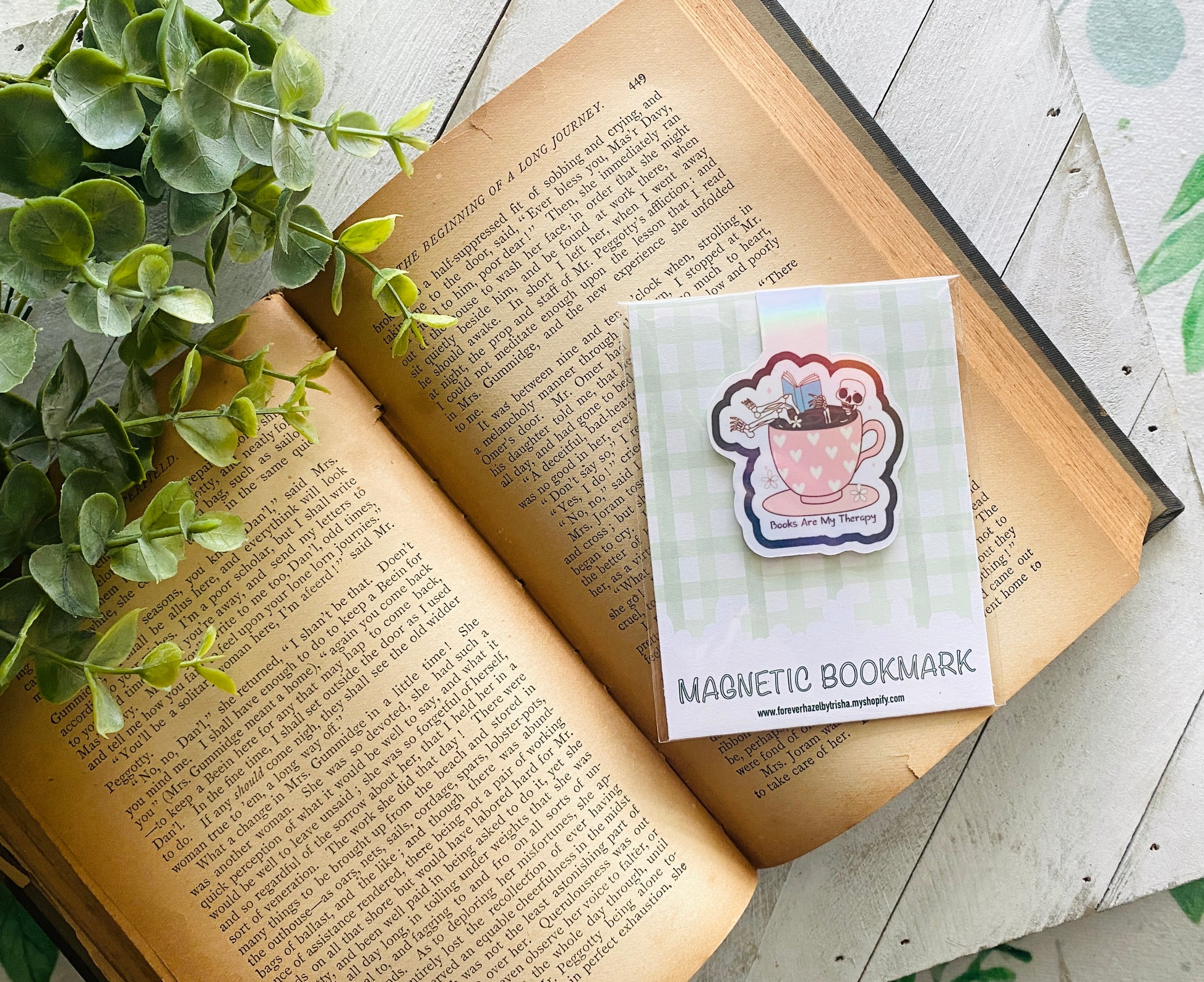 Magnetic closure with 0.8" round magnet to hold bookmark in place on page
