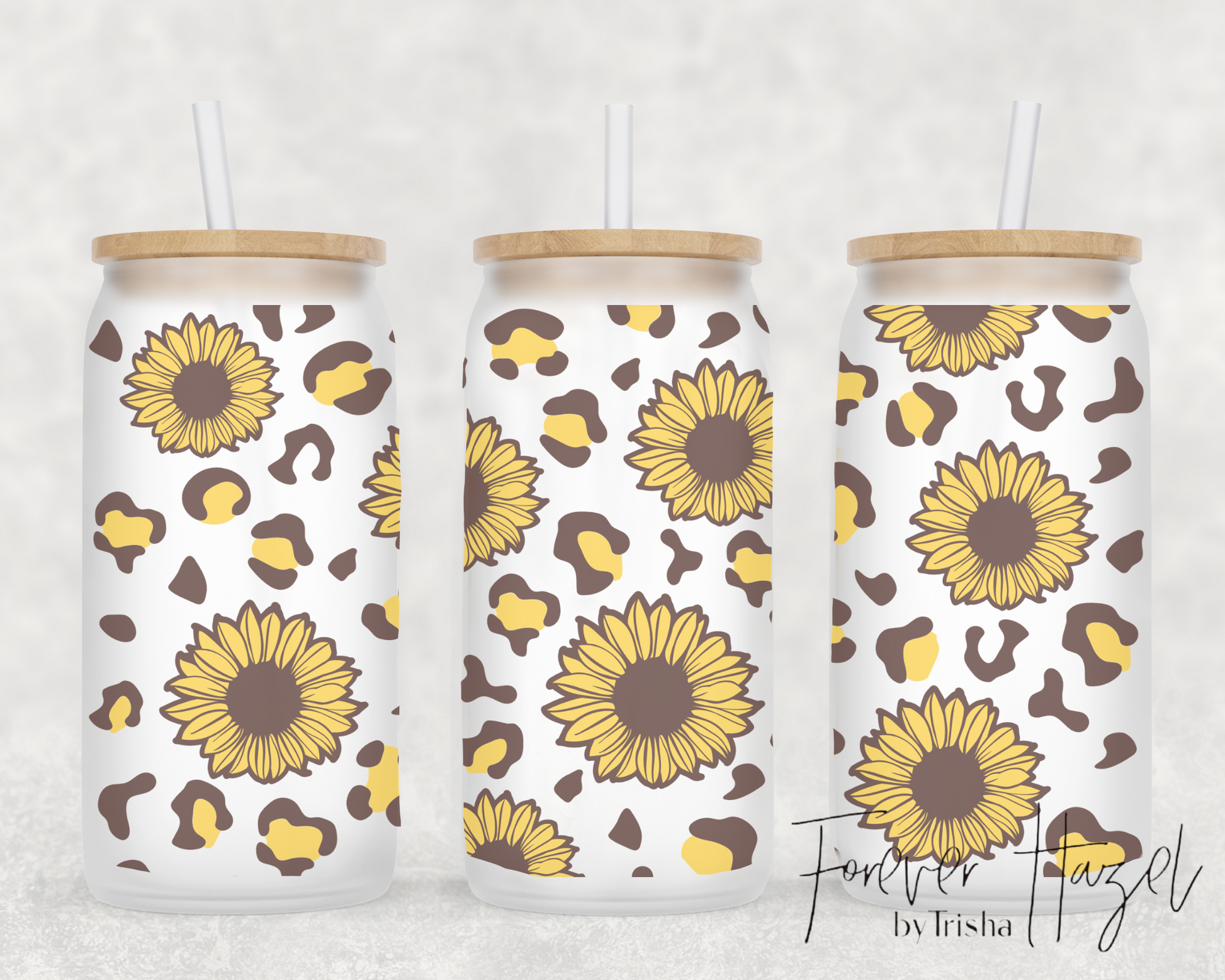 Cheetah Sunflowers 16oz Frosted Glass Can