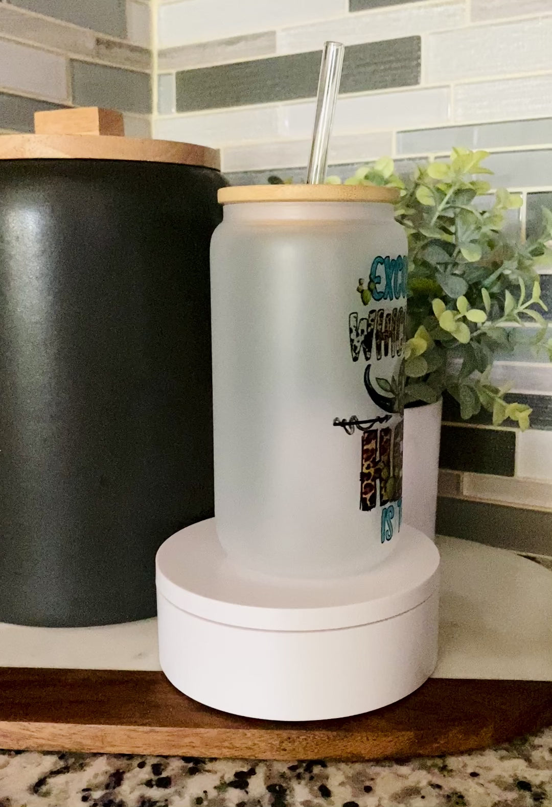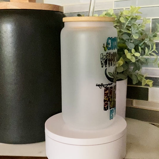 16 oz frosted glass can with bamboo lid