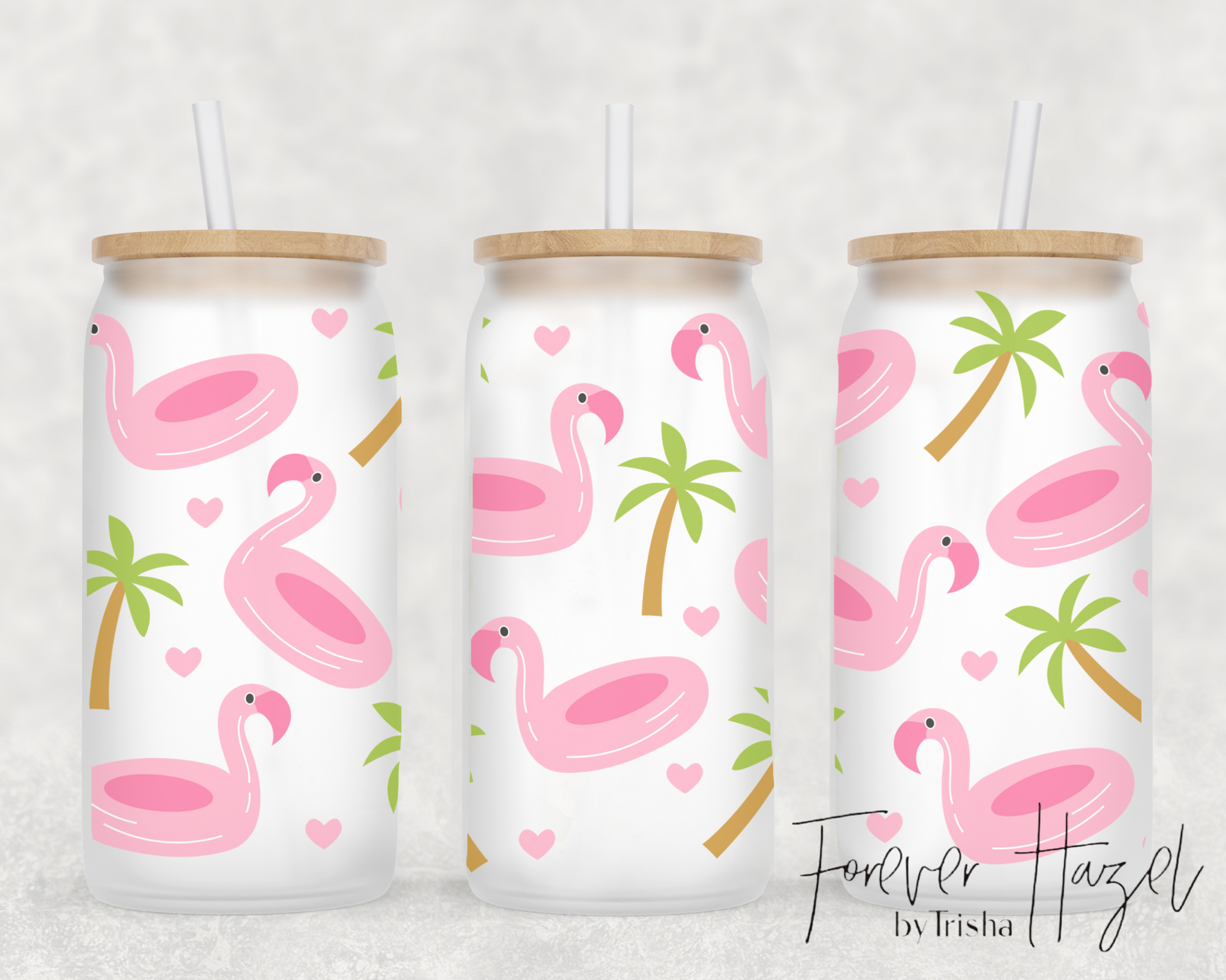 Flamingo Pool Floaties 16oz Frosted Glass Can