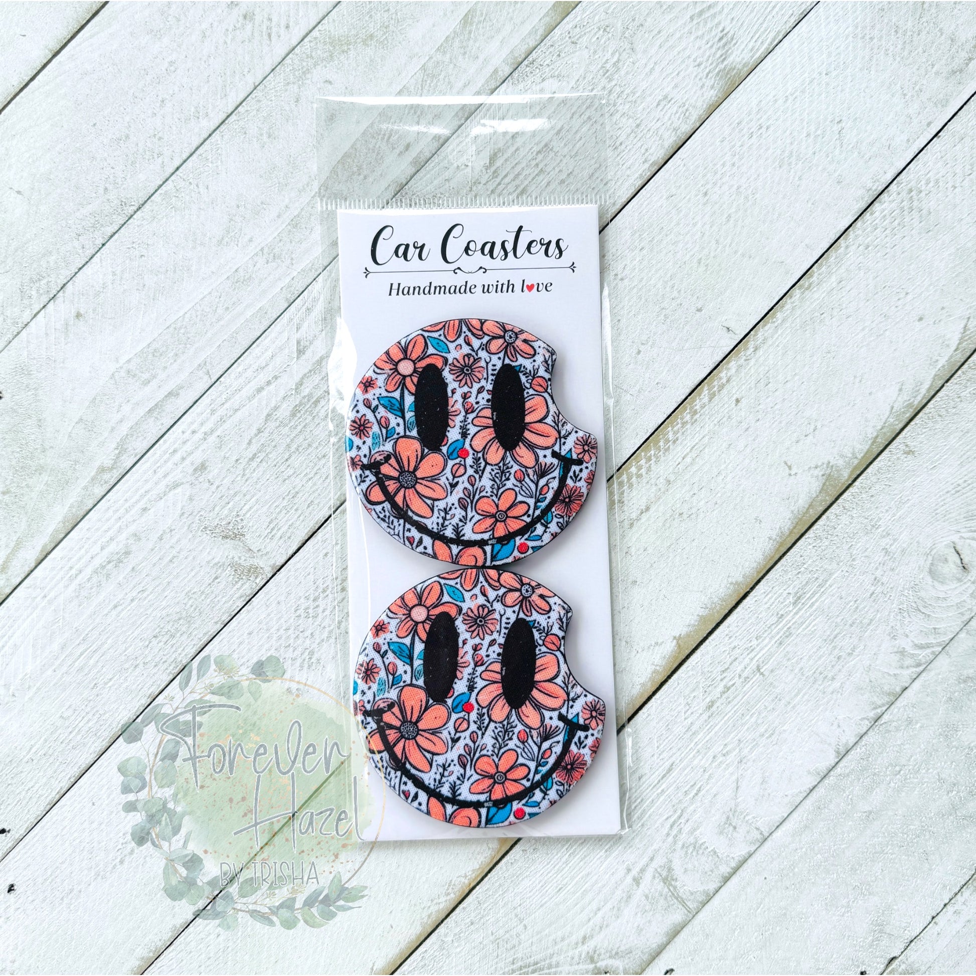 Floral Smiley Face Car Coaster Set