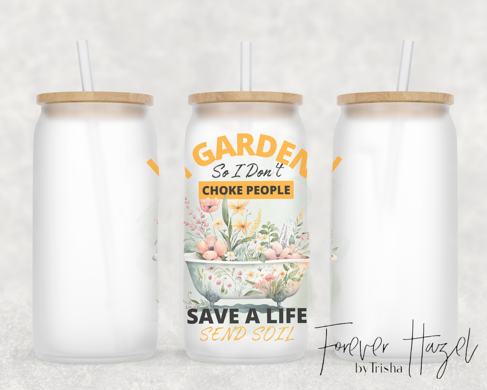 I Garden So I Don't Choke People. Save A Life, Send Soil 16oz Frosted Glass Can