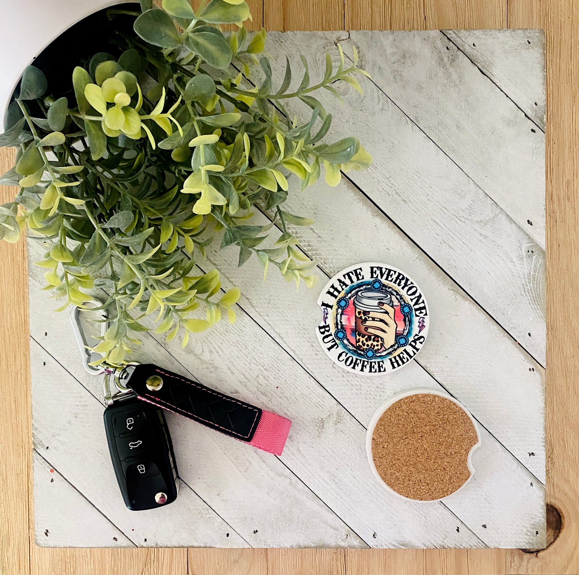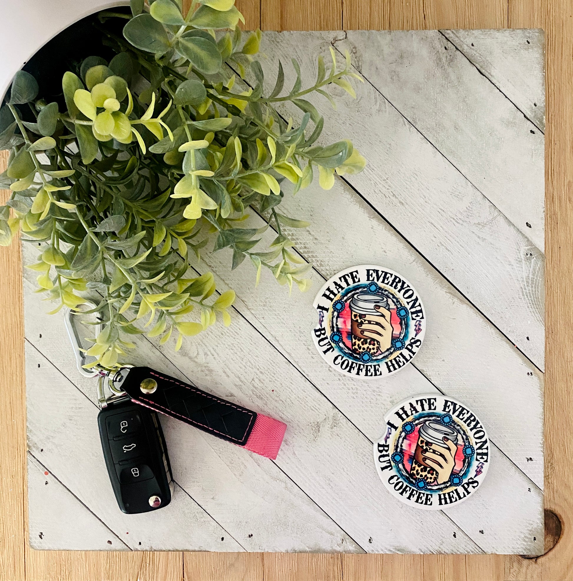 I Hate Everyone But Coffee Helps Car Coaster Set