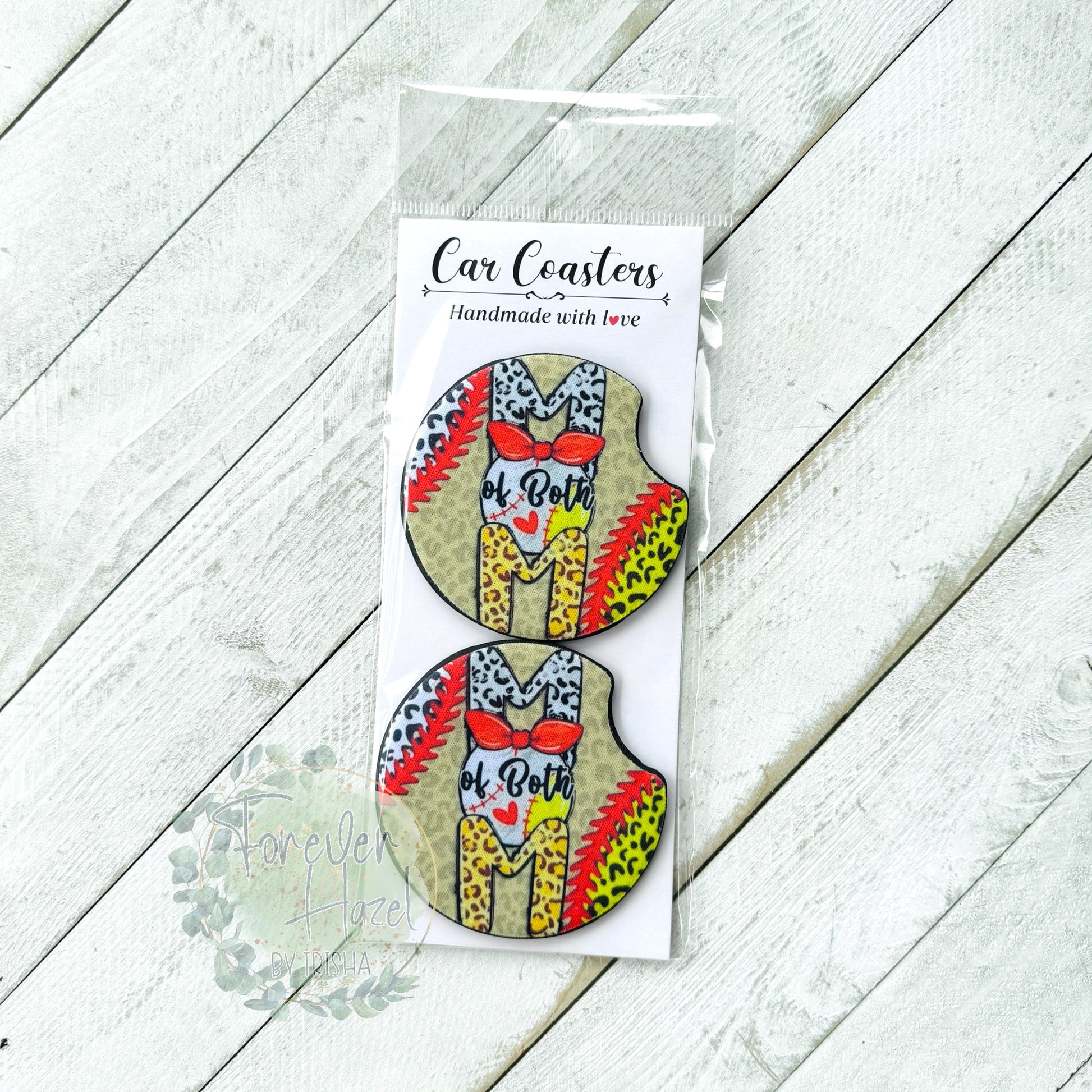Tired of having the condensation that has pooled at the bottom of your car's cup holder drip on you? If so, you need some car coasters! These fun car accessories will keep your cup holder dry and are sure to get PLENTY of compliments! They are 2.75" neoprene rounds with a notch to make removal easy.