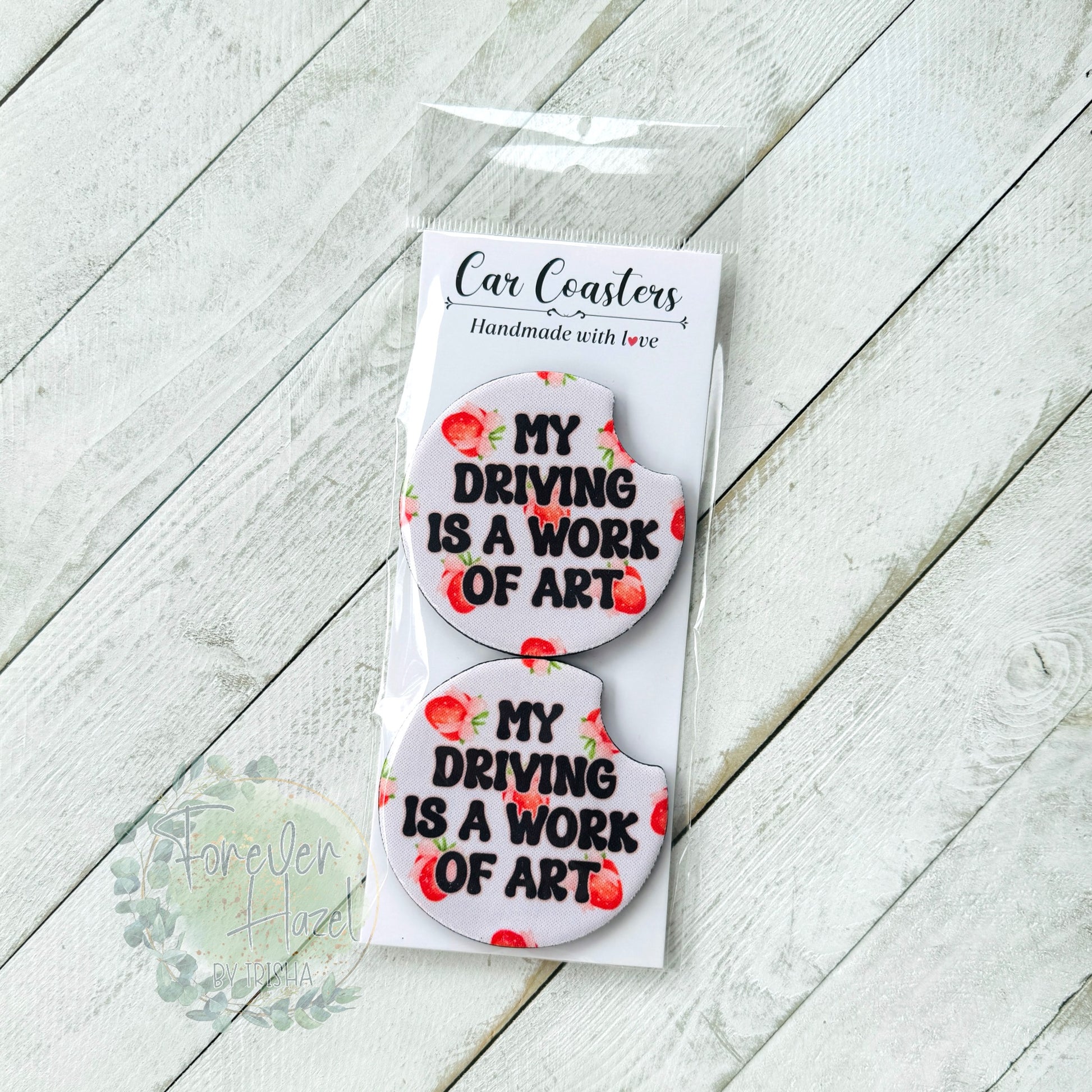 The design on these car coasters is done with sublimation. Sublimation is a process where ink is dyed onto the coaster. A special printer with special ink prints the images, which are then pressed onto the coaster using a commercial grade heat press. These car coasters are specifically designed to be long lasting. NO VINYL - You will not experience any cracking or peeling with sublimation.