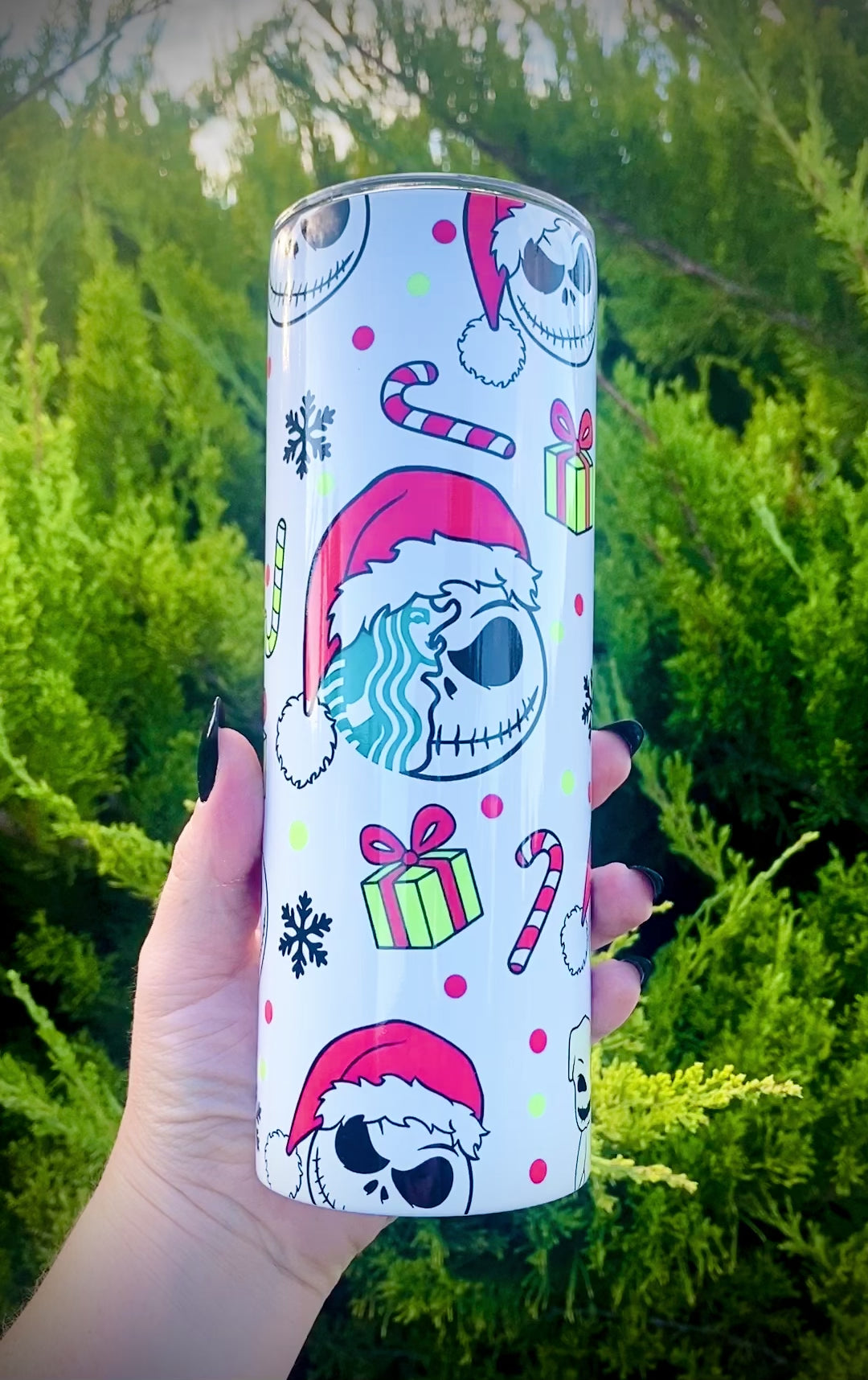 It holds 20 oz of your favorite beverage; has a plastic lid and comes with a reusable straw.
