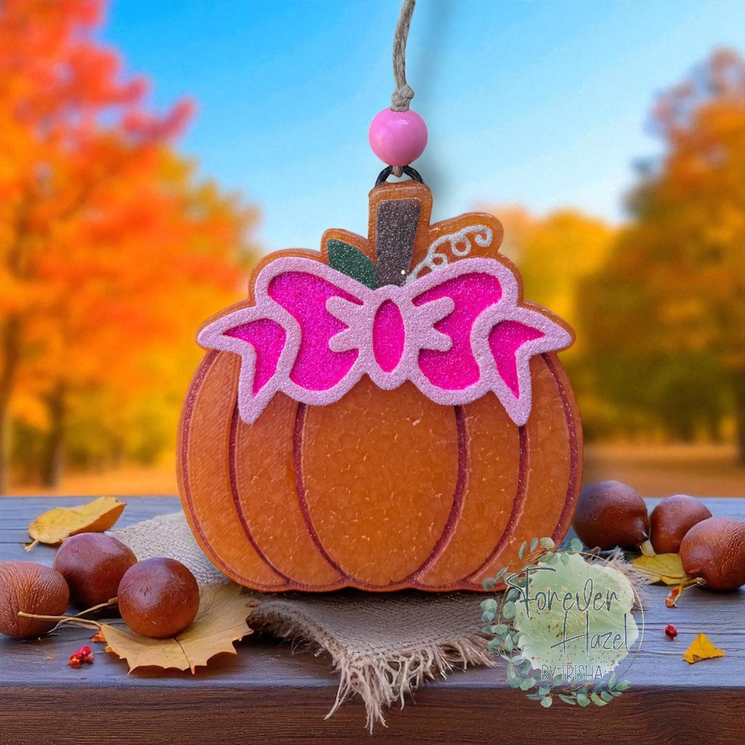 Pumpkin With Bow Freshie: Autumn Aroma Bead Air Freshener