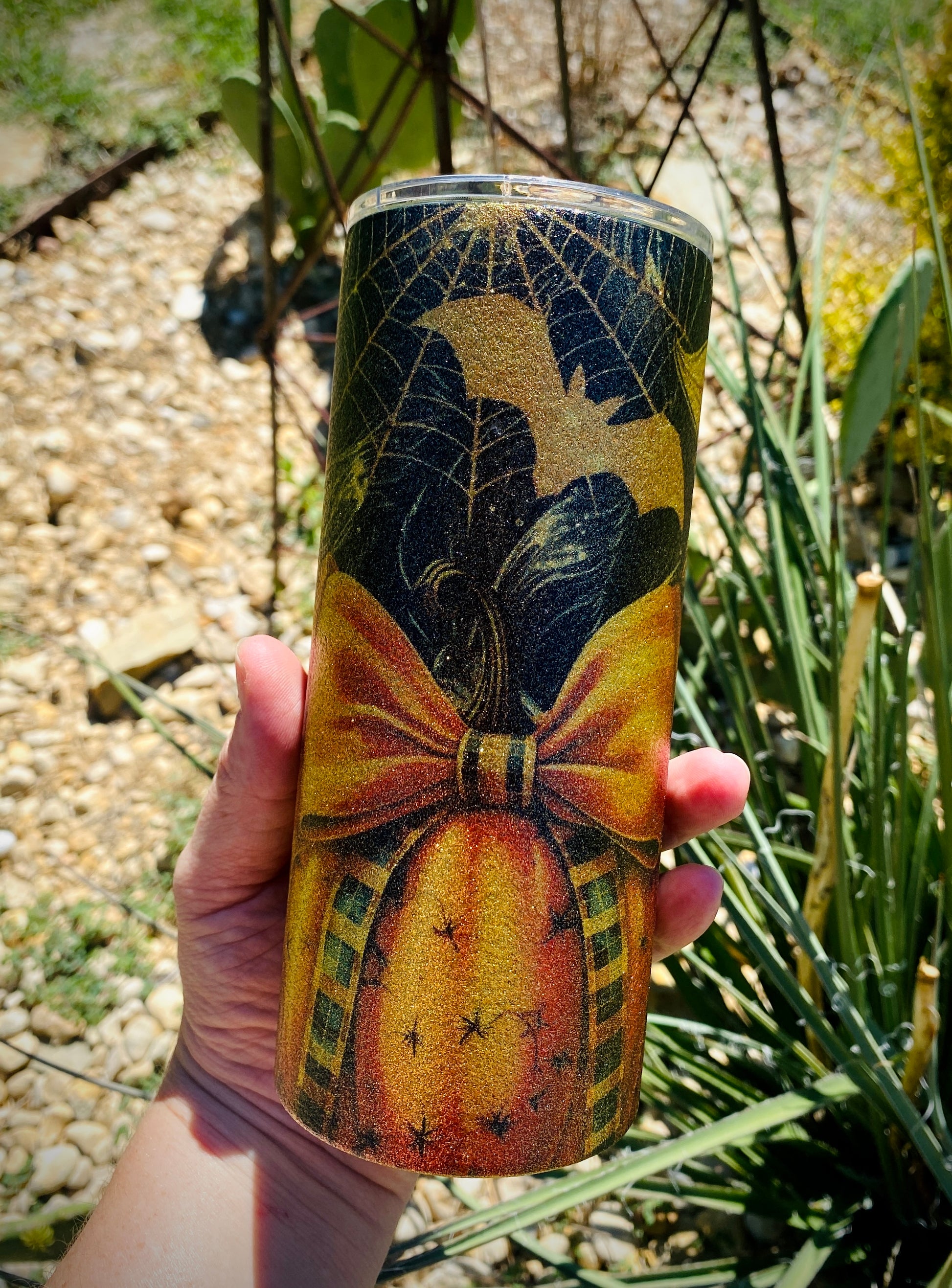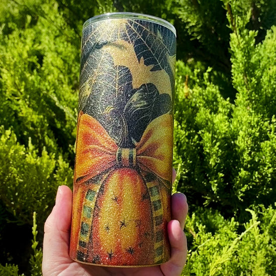 Spooky Pumpkins and Sunflowers Gold Glitter Tumbler